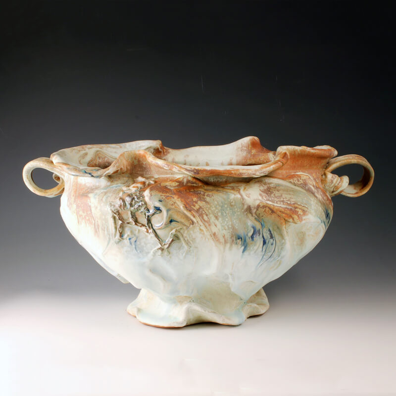 Meira Mathison has maintained a studio, Dancerwood Pottery in Victoria, British Columbia, Canada for over 35 years. For the past 30 years she has conducted workshops throughout British Columbia, Alberta, Canada, U.S.A., England and Mexico. Meira sells her work though art shows, Dancerwood Pottery and galleries in Canada and the United States. She is noted for her unique high-fire altered porcelain using thick slips, layered glazes and colored inlaid imprints. These elements create movement that dance throughout her pots. Most recently she has been exploring the large double wall form, a very technically and challenging form that is manipulated into shapes that mimic the sea scoured sandstone. Meira was the Executive Director of the Metchosin International School of Art for over 22 years, and now directs their ceramic program.