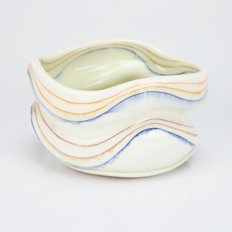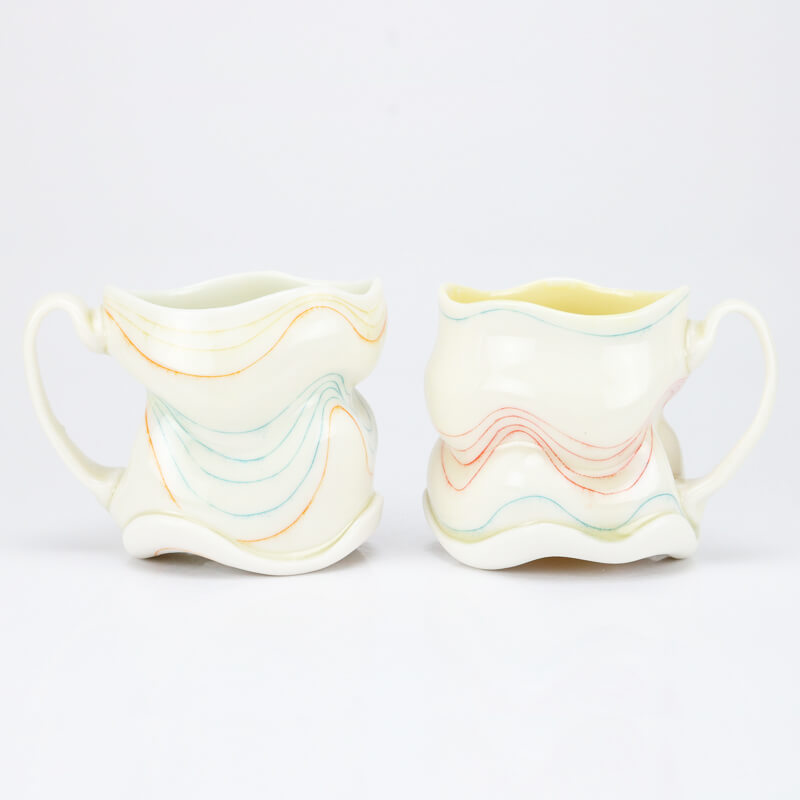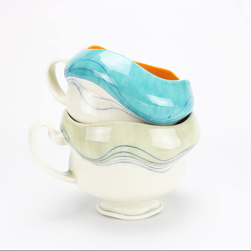 I find passion in creating functional forms like mugs, bowls, and tumblers that will have a repeating role in someone’s daily life. I draw inspiration from the natural world around me and use clay as my way of exploring the physical world. My curiosity sparks when I look at a map, new landscape, or scientific drawing, which always contains fascinating paths and structures. I translate these wonders into my work in the form of line, pattern, color, and shape, while porcelain allows for the blank canvas on which to communicate my discoveries. I hope to entice the viewer to interact with my pieces: follow the lines, look inside them, explore the form, and ultimately make their own discoveries.