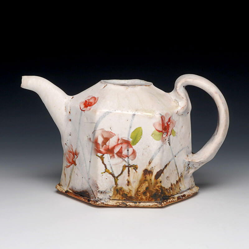 My work invites touch, like a stone plucked from a riverbed I love pots that are smooth in the hand but have a rugged, natural beauty. I observe a constant erosion and evaporation that takes place in my daily environment. I strive for layers of visual depth combining slip, glaze and texture to recall this geological wearing. Traditional utilitarian forms are the vocabulary for my investigation, surfaces are a combination of historic patterns and motifs mixed with the vibrancy and life of midcentury abstract expressionist paintings.
