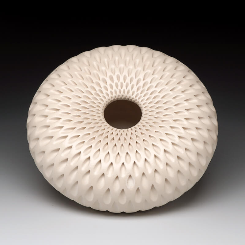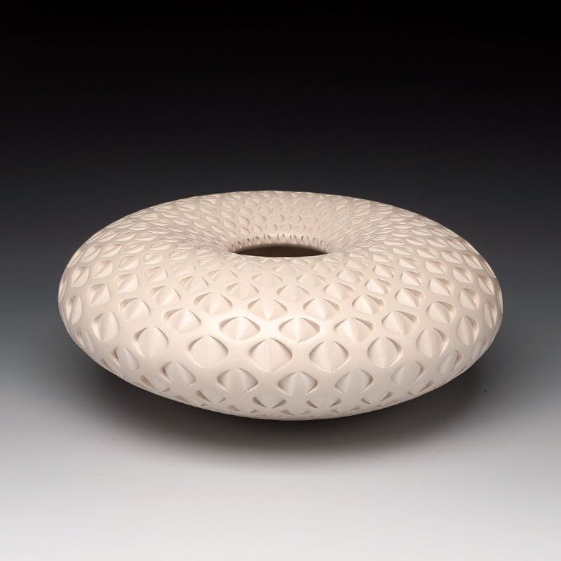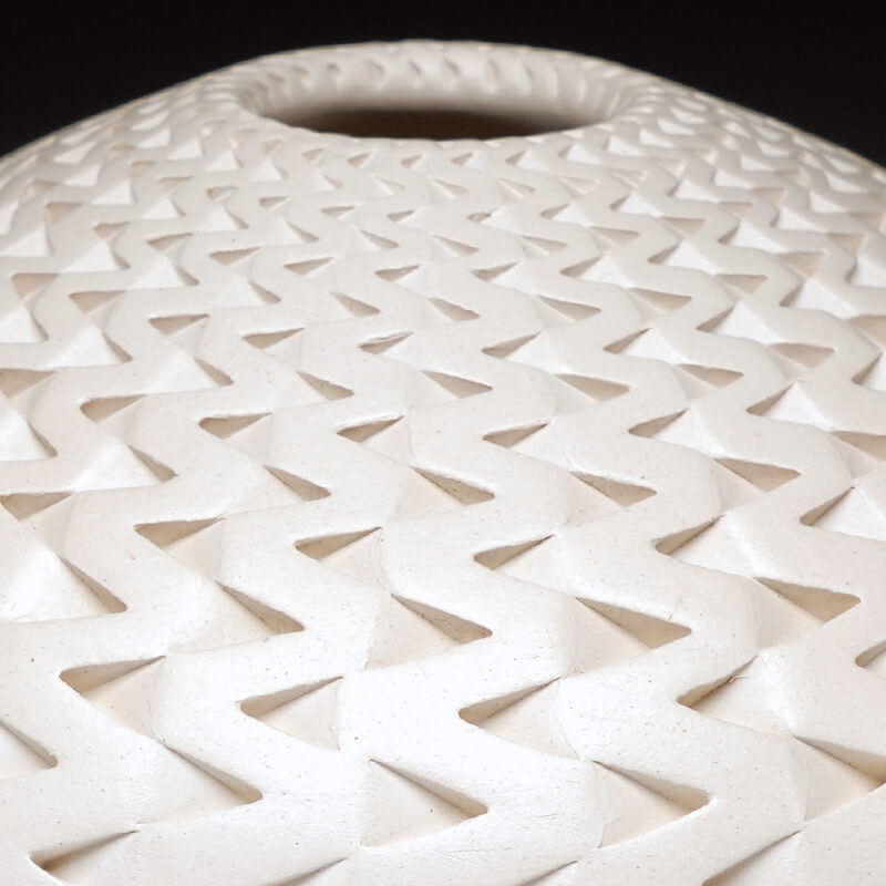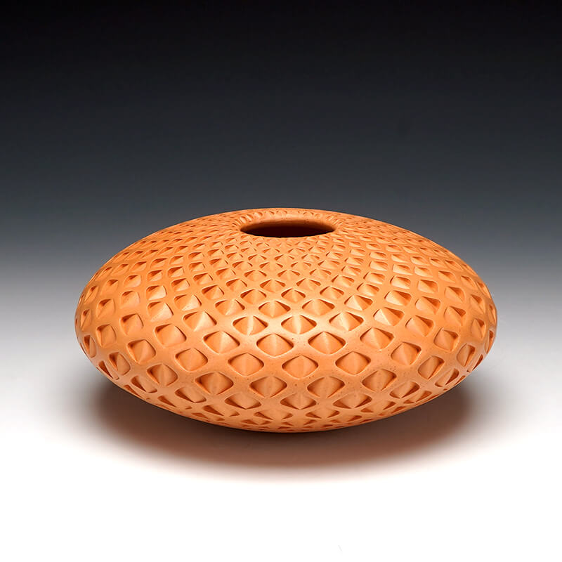 My work is the amalgamation of something old and something new. For many years I studied under the traditional Mexican artist Juan Quezada, recipient of Mexico’s highest award “Bellas Artes”. Juan taught me traditional pottery skills literally from the ground up. His rigorous standard of craftsmanship challenged me to develop hand-making skills to a level I thought impossible. His passion to create was contagious. I worked for years under his tutelage while simultaneously working as a resident artist at the Anderson Ranch Arts Center in Colorado where I was exposed to many contemporary ideas. Straddling both worlds of traditional and contemporary ceramics, I began to incorporate elements from both. Today I use Juan’s old clay technology rich with natural clay colors made from clay found here in the mountains. Using old and new hand building techniques I make soft rounded forms many I consider feminine. Over these surfaces I have developed hundreds of contemporary patterns that replace the traditional painting seen in southwest pottery. These patterns all originate from nature. Ideas come from many sources including pinecones, seed pods and rhythmic patterns seen throughout nature like ocean waves. I hope that this work bringing together the familiar and novel somehow tickles the senses.