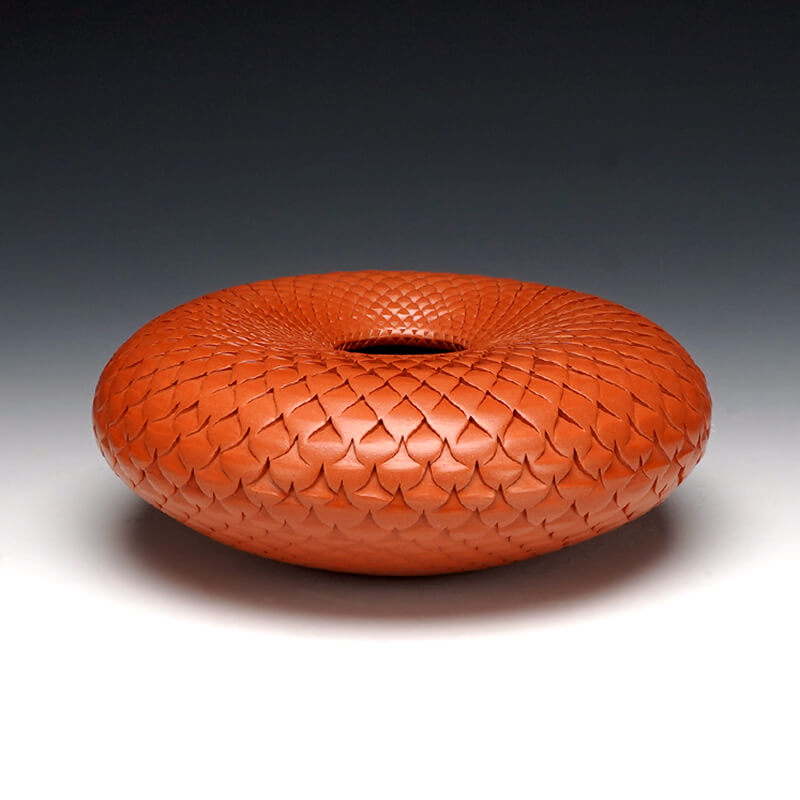 For many years, Michael Wisner has studied extensively with indigenous potters from Mexico and the American Southwest. In 1989 he began a summer apprenticeship with Juan Quezada, living national treasure of Mexico. Currently, Wisner lives and works in Woody Creek, Colorado, where he digs local clay for his work. He hand-coils the clay to create his forms, which he then incises and fires outdoors in an open bonfire. Traditional woven textiles inspire his designs.