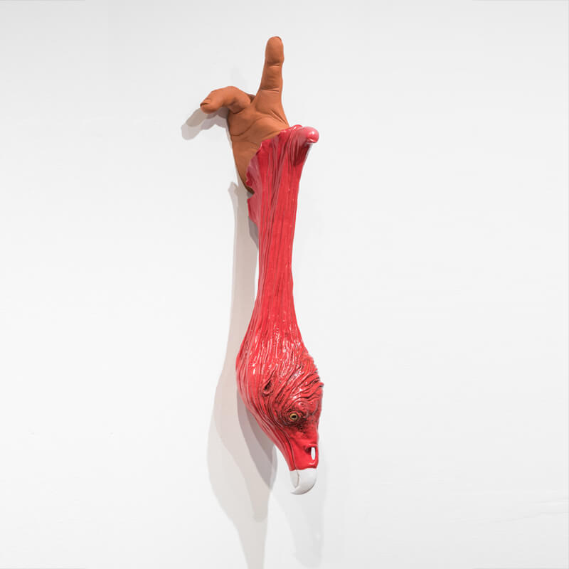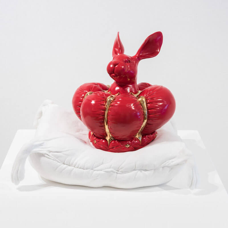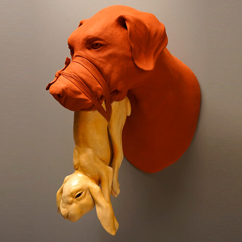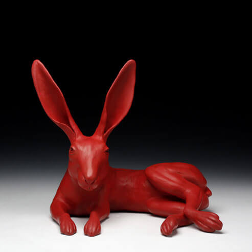 I tell visual stories with the use of animal imagery. In my work I wrestle with existential questions of life and death through the symbolism of the body and animals. My intensely saturated ceramic figures represent the decadence of worldly pleasures, a vibrant source of energy that is antithetical to death and dying. It is through embracing life and living that the pull of death and suffering is kept at a distance. Like Aesop’s Fables, animals such as dogs, rabbits, crabs, monkeys and frogs provide a vehicle to express the human condition. Animal imagery is the beginning of a deeper understanding of humanity.