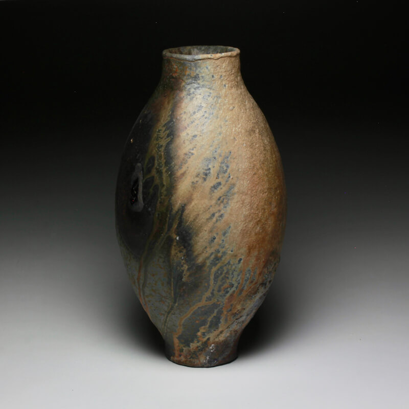 These lively pots are enhanced with a dynamic and varied surface which are the results of wood firings. This interaction of fire, wood, and clay gives me a varied palette of colors and textures. My work are records of the aggressive atmosphere matched with soft forms to bring contrast. Drips of ash clash with markings recorded by the path of the flame, contrasting with one another to give a further sense of balance. I aim to invoke moments of awe with the contrasts of form and surface, but I also want the viewer to engage with the details of the work and dive deeper to explore the nuances of the pot.
