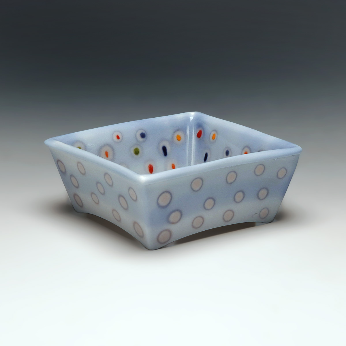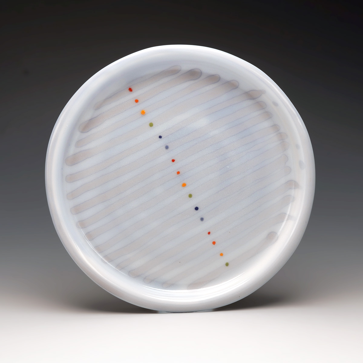 The character of my current work resides in the contrast and modulation of different color shades. The color softness and sharp edges, result into a dramatic chromatic composition in contrast to the white, translucent, and matte porcelain surface and accentuate the simplicity of the shape. Porcelain, in the thinnest of its expressions, demonstrates a life of its own, moving to the heat of the firing and resulting in an imprint of its own memory.