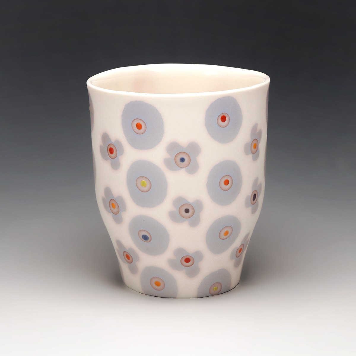 My desire for delicate looking but with a sturdy body inspired me to use slip casting as my preferred process, and my interest for unglazed surfaces led me to develop a selected palette of color using soluble salts to achieve watercolor-like effects.