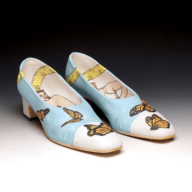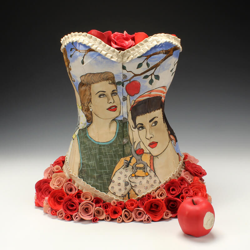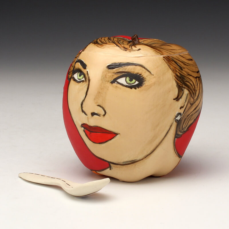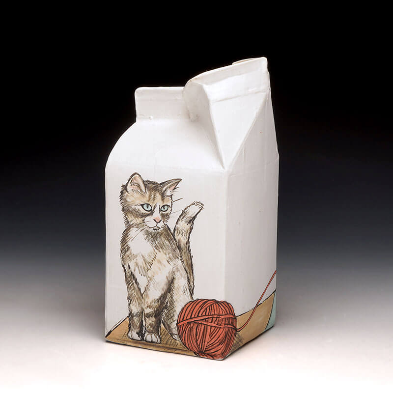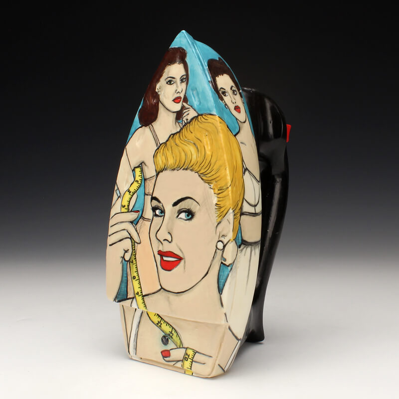 My ceramic sculptures reflect upon a variety of issues with a thoughtful, yet humorous and ironic tone. I am inspired by the potential of everyday common objects. I reproduce these objects primarily through slipcasting, and illustrate the surfaces with a variety of handpainted and screenprinted imagery. My narratives explore topics ranging from fairytales, urban mythologies, consumer culture, societal expectations, etiquette, and coming-of-age issues. Stylistically, much of my imagery is pulled from somewhat “dated” sources that I find represent an idealized time in society and advertising. Such gems include instructional guides, cookbooks, old advertisements, and old family photos. Beneath the shiny veneer of these relics hides a complex and sometimes contradicting truth of what things seem to appear as upon first glance.