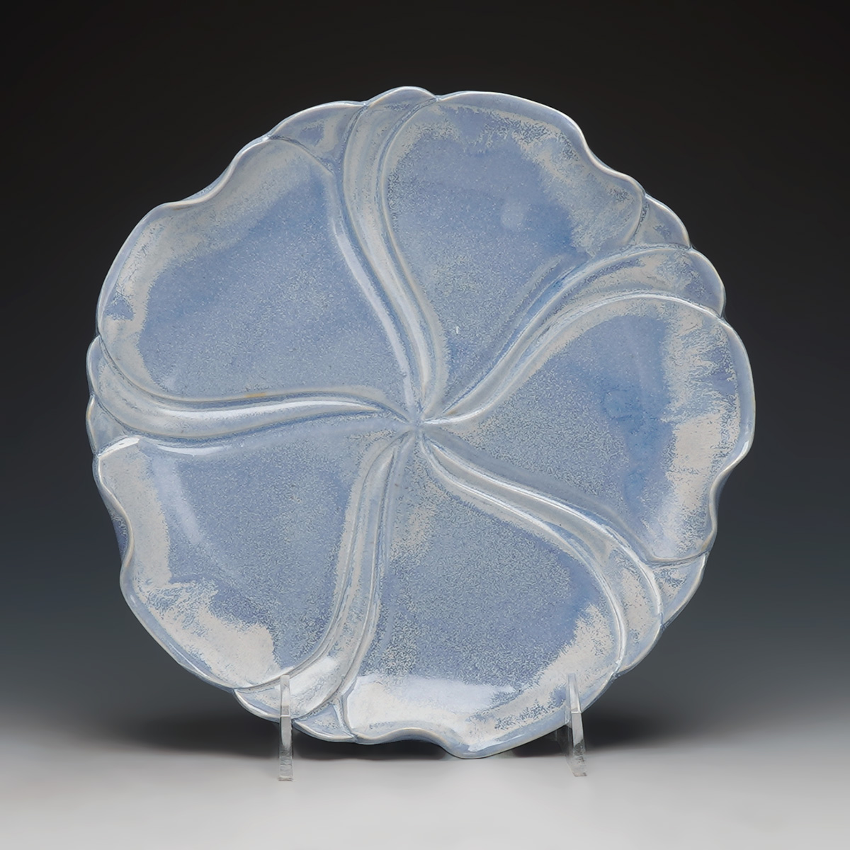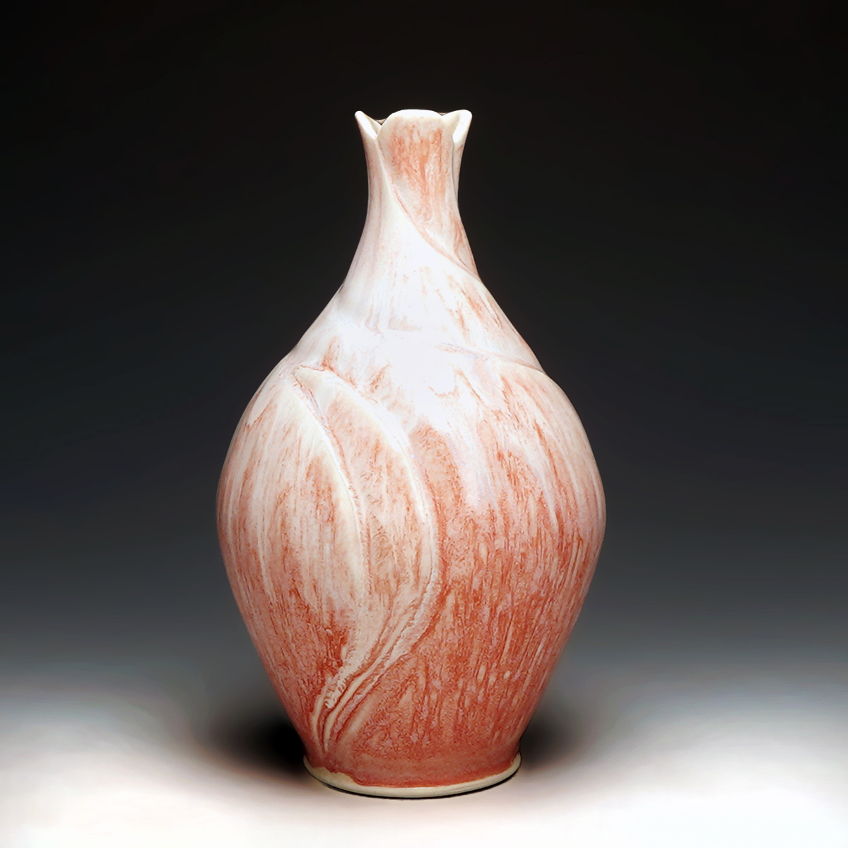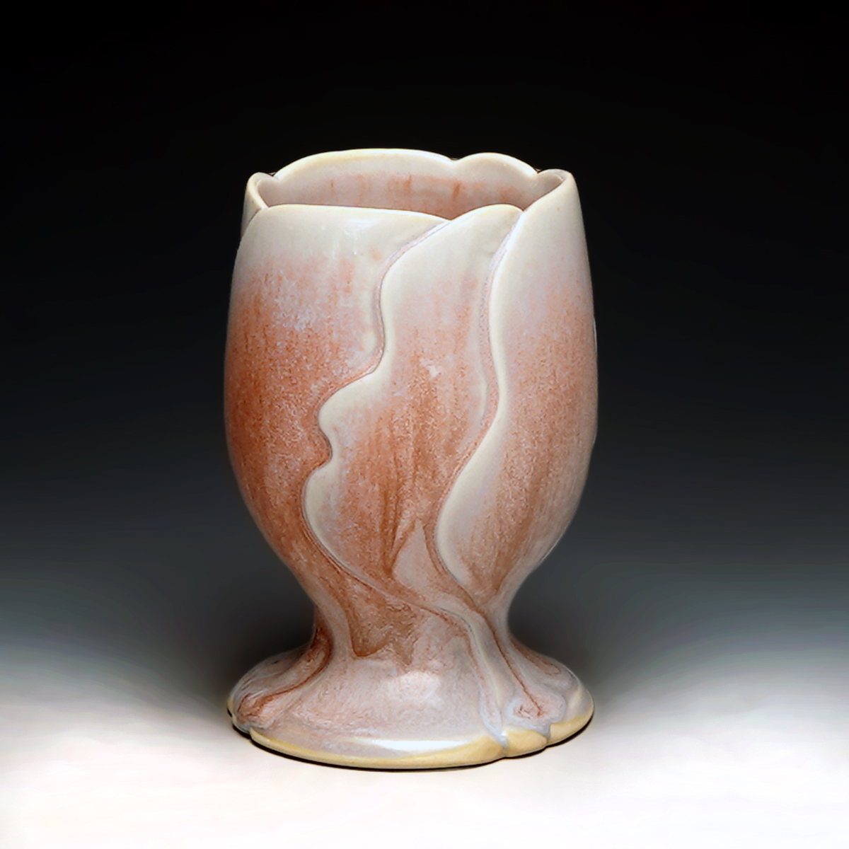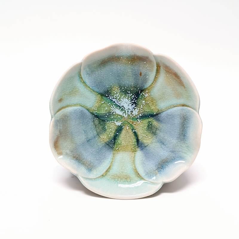 My love of plants fuels my search for beauty. I am fascinated and inspired by the physical properties of flowers including their form, surface, color, pattern, and movement. In addition, their ephemerality and sense of preciousness enhance their seemingly magical existence. My floral-inspired porcelain tableware involves hand-built and wheel-thrown components that are altered and carved. I use microcrystalline glazes to mimic the rich and captivating surfaces of flower petals. Inspired by my background in jewelry, I incorporate stone-setting techniques where I set gemstones into the raw clay. I often include these ‘hidden gems’ on the foot of a pot, rewarding the user’s investigation with a moment of discovery. To me, this act of discovery is reminiscent of noticing a dewdrop on the underside of a leaf. I want to encourage others to recognize and appreciate the small, beautiful moments that too often go unnoticed.