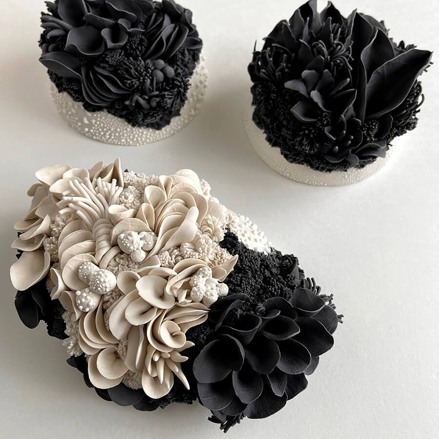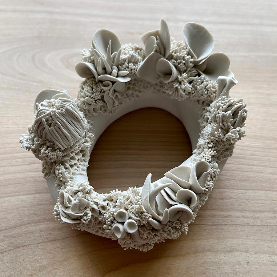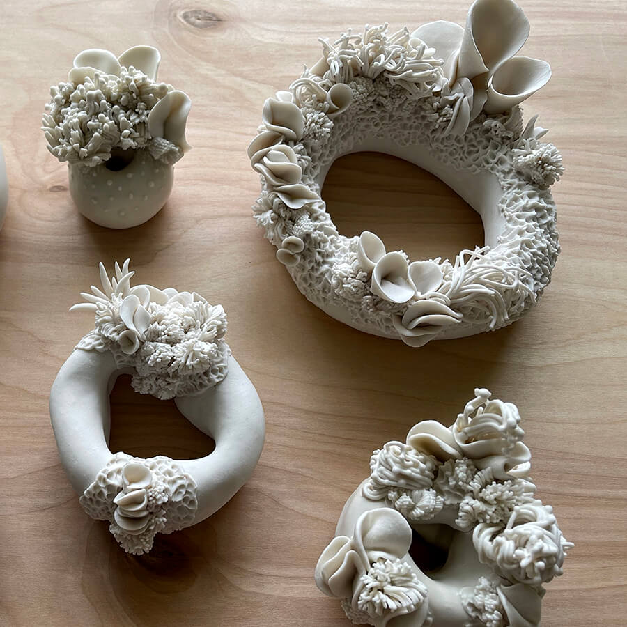 Working mostly with delicate porcelains and the occasional rustic earthy clay, I create decorative and sculptural art inspired by nature: flowers • forests • plants • fungi • botanicals • animals • oceanic life • the earth’s landscape … and influenced by dreams and hazy memories floating just beyond the grasp of the conscious mind. It’s like a beautiful meeting of the real + imaginary within layers of soft, quiet femininity. By using the meditative process of ceramics to interpret these details from the natural (and sometimes not-so-natural) world, I hope to bring a sense of wonder and delight to the viewer, and inspire you to notice “the little things” normally overlooked or unseen in the busyness of modern life.