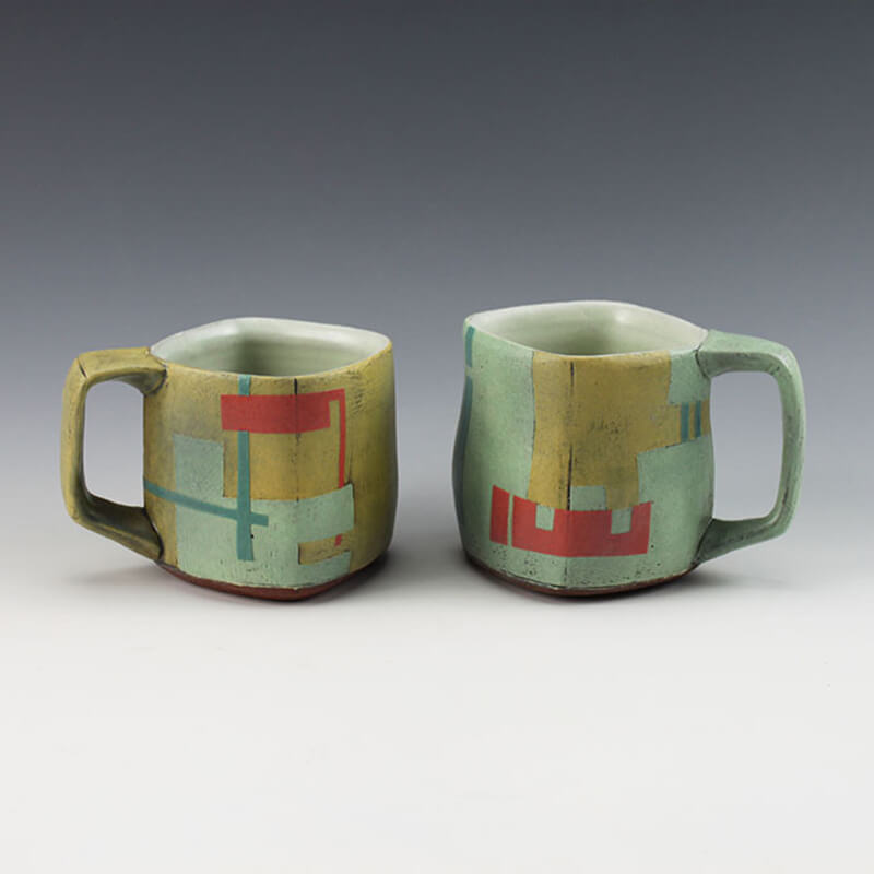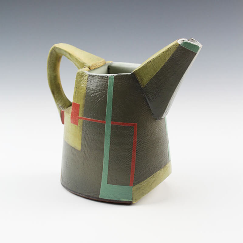 The wonder of pottery is that it is taken into our most intimate spaces. I appreciate that pots have the power to facilitate rituals and experiences and connect people. Discovery of subtle nuances, marks of the hand, edges, are realized over time and connect the user to the maker through touch, time, and use. Abstractions of landscape and architecture become the conceptual underpinning for my approaches to form, painterly surfaces, color, and texture. Experimentation and improvisation continue to be important to me as I am repeatedly questioning the balance between the rational and spontaneous in my compositional processes.