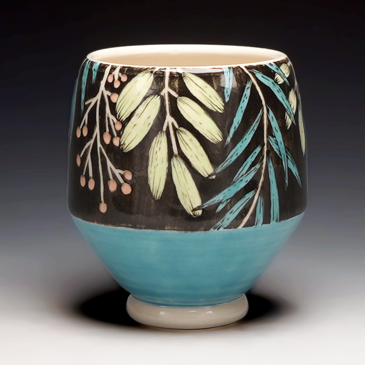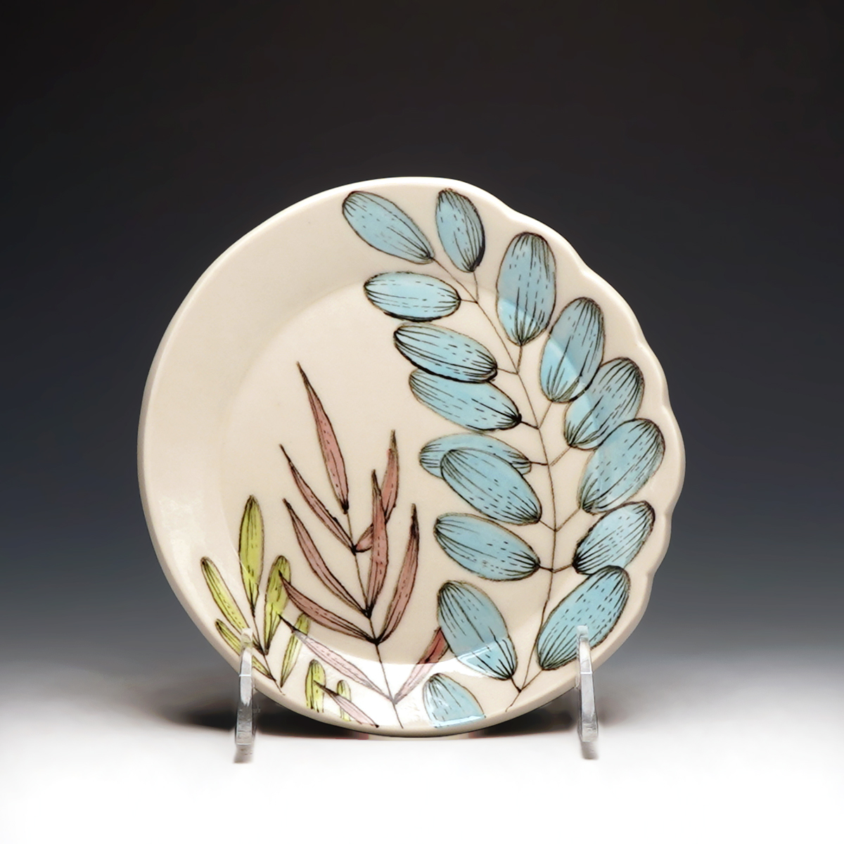 My work calls attention to the beauty of nature that often goes unnoticed, particularly petals, stems, plants, and other elements of nature which continuously fuel my inspiration. When surrounded by nature, I find the sense of belonging that I search for as an immigrant in a foreign land. I use underglaze trailing and painting techniques on ceramics to illustrate exaggerated forms, colors, and textures that are derived from my experience of being in nature. By letting my imagination guide the use of plants and petals in my work, I hope to bring that joy into others’ everyday rituals. As one explores the intimate details of my work, I would like to emphasize that I intend to encourage viewers to observe the minute details of all aspects of our surroundings and appreciate the significance of our co-existence.
