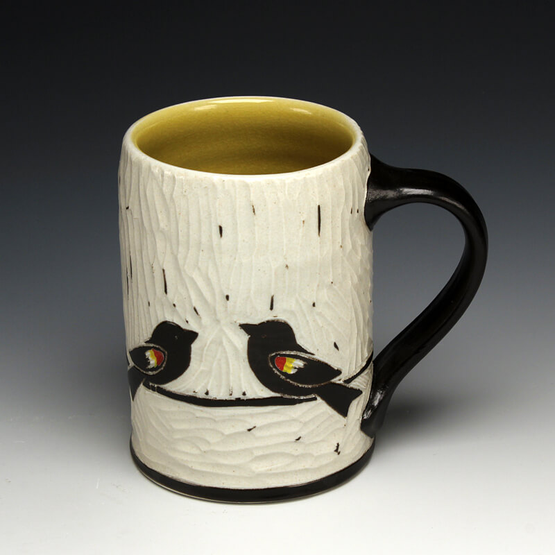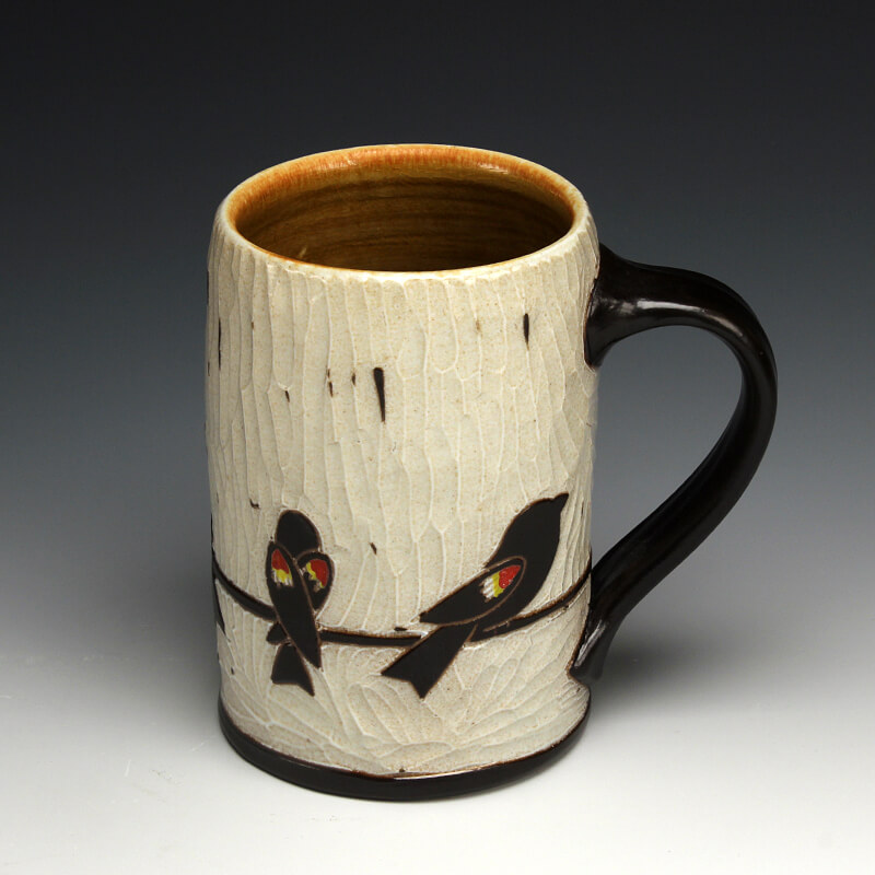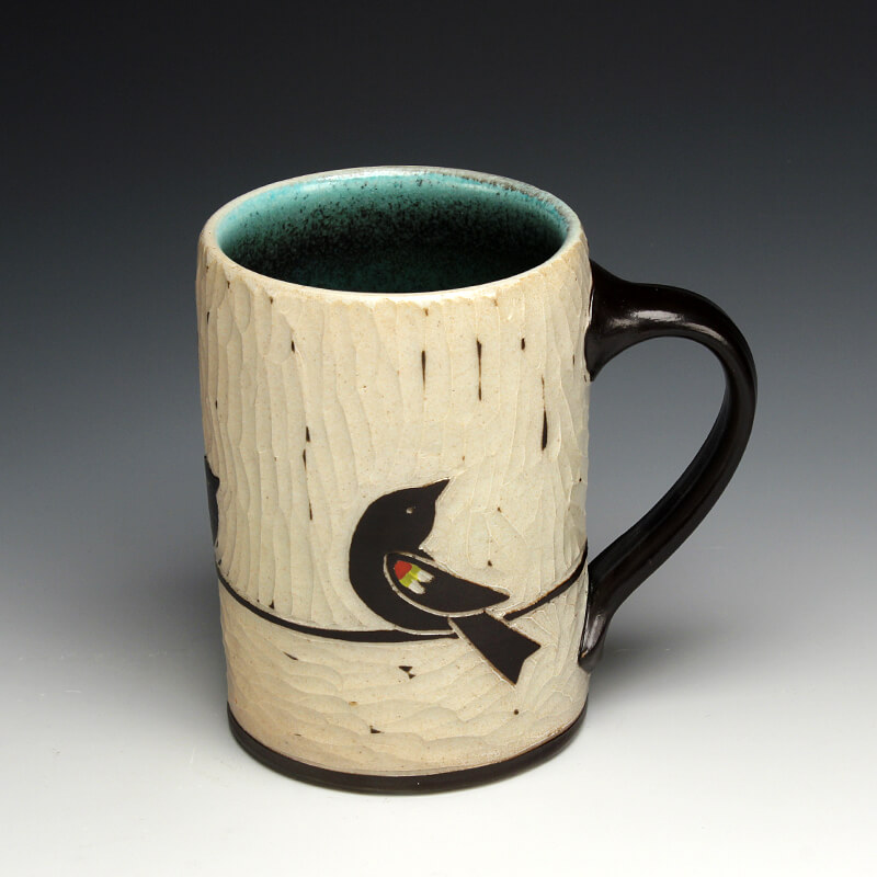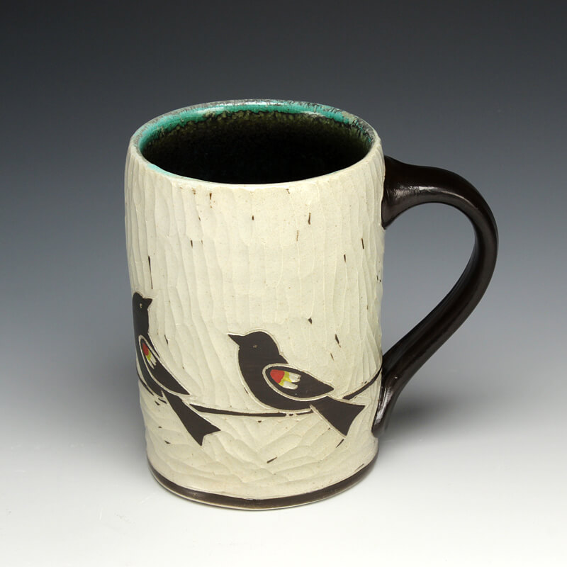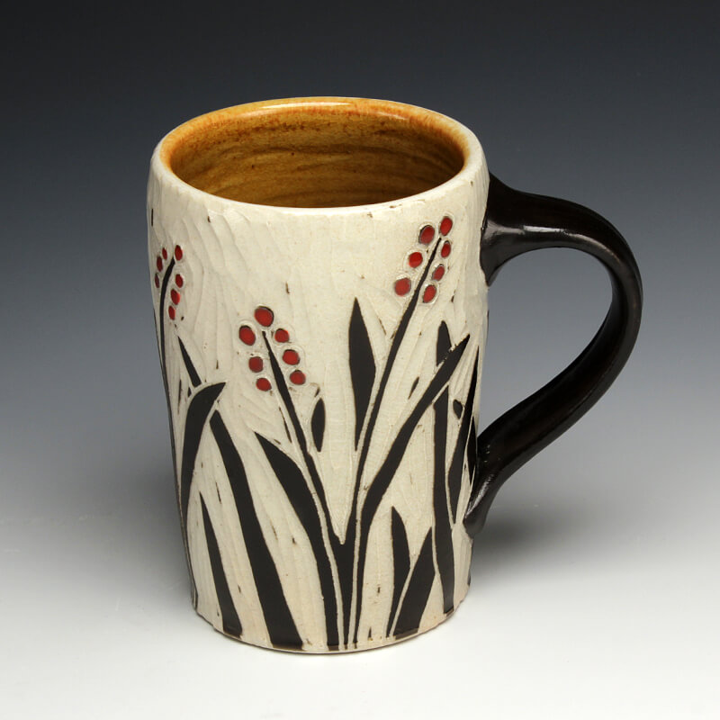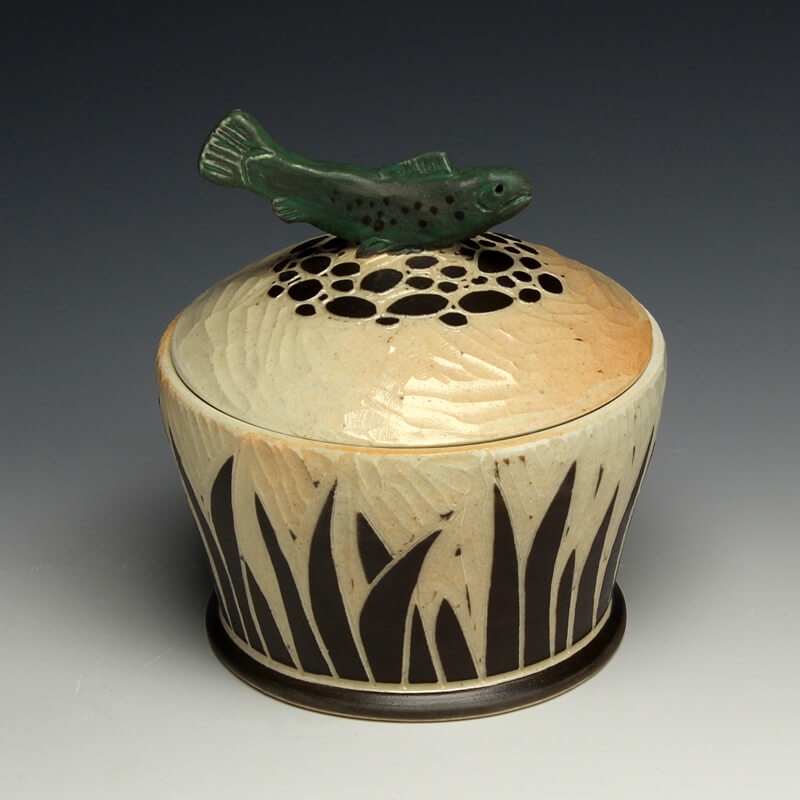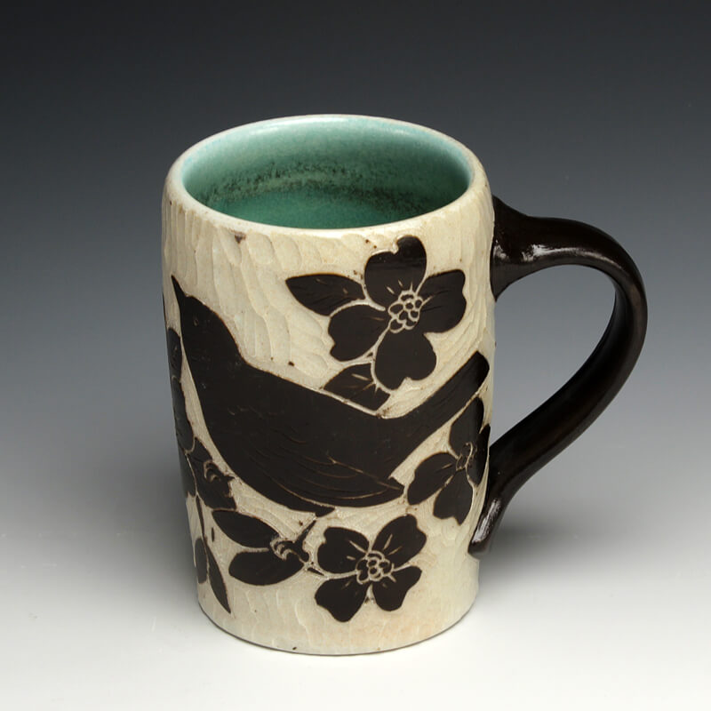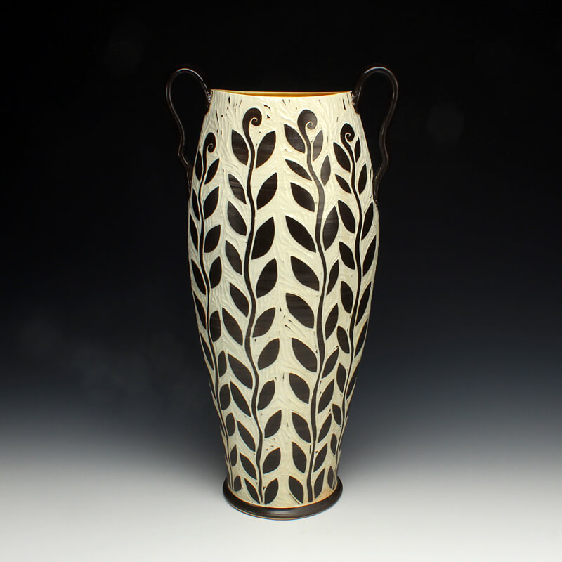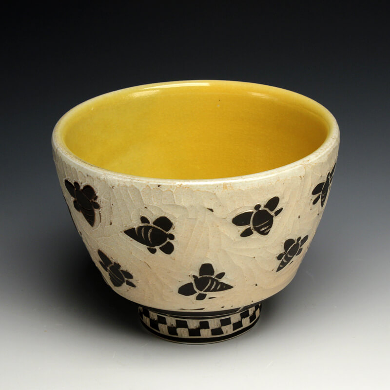 “My love of ceramic history influences the pots I make, so I strive to encompass many ceramic techniques from around the world. I use the sgrafitto carving technique which was developed in the eastern Mediterranean in the 4th century. The images on their pots represented aspects of their everyday experiences. This idea of using scenes and icons from daily life has always been an integral part of my work. I use an English porcelain clay and to complete my pots I fire them in a salt kiln, a firing method developed in Germany in the 16th century. I am also influenced by Asian, English, Islamic and French pottery from different periods. I strive to encompass many ceramic traditions from around the world and from different parts of history in the pots I make. Using the reductive sgrafitto carving method enables me to add movement to the images on the surface of my pots. To further amplify this notion of lively animation I use the salt glaze firing method to activate the surface of my pots. This firing style promotes subtle color variations in the clay and applied glazes while also glazing the carved areas of my pots. The fire completes my process making each piece distinctive.”