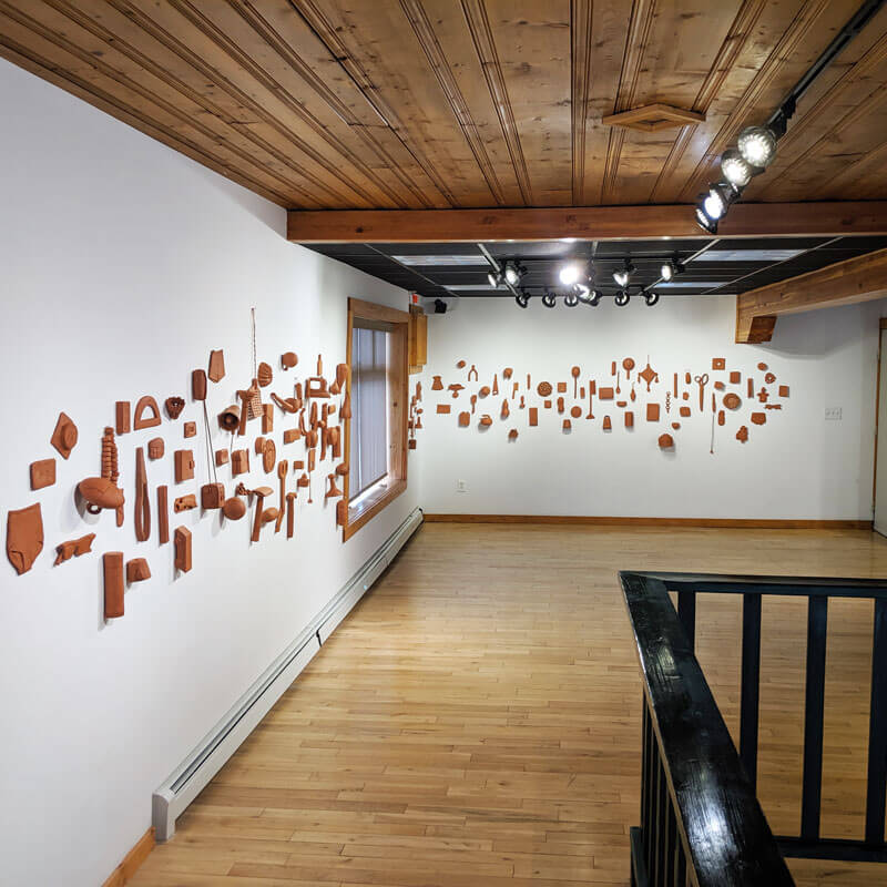 Pattie Chalmers’ installation, “Every Day I Think of You”, is a project about the power of objects to remind us of an individual. Each of the 365 terra cotta objects made by Chalmers possess an aura of someone she has personally known.