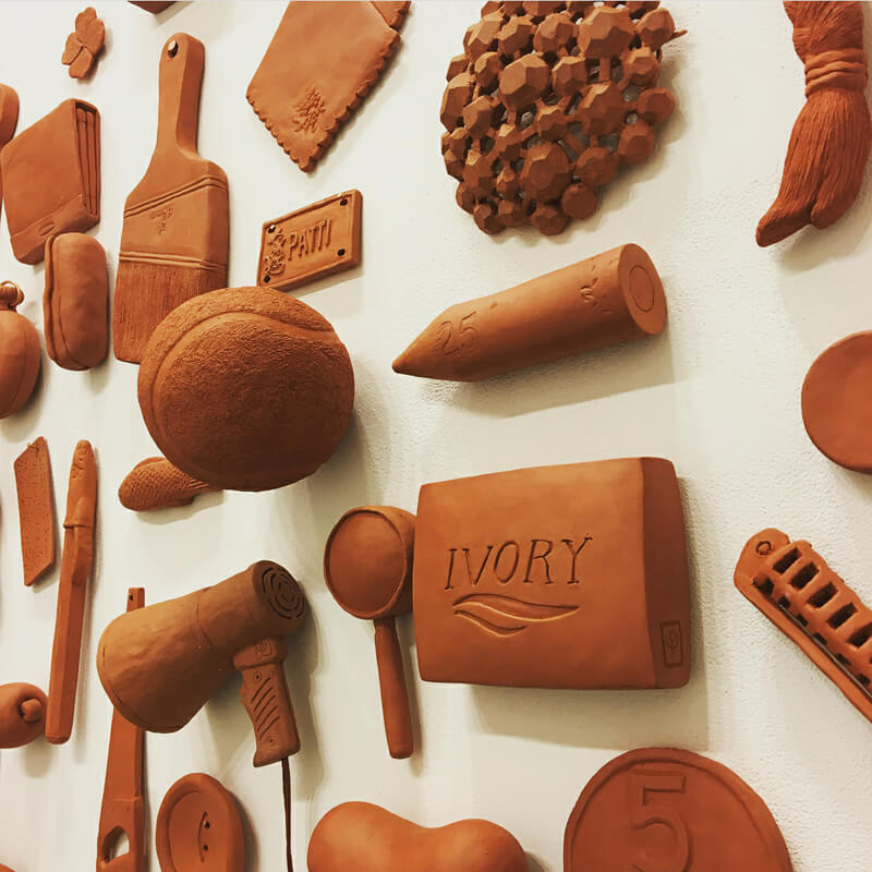 Pattie Chalmers’ installation, “Every Day I Think of You”, is a project about the power of objects to remind us of an individual. Each of the 365 terra cotta objects made by Chalmers possess an aura of someone she has personally known.