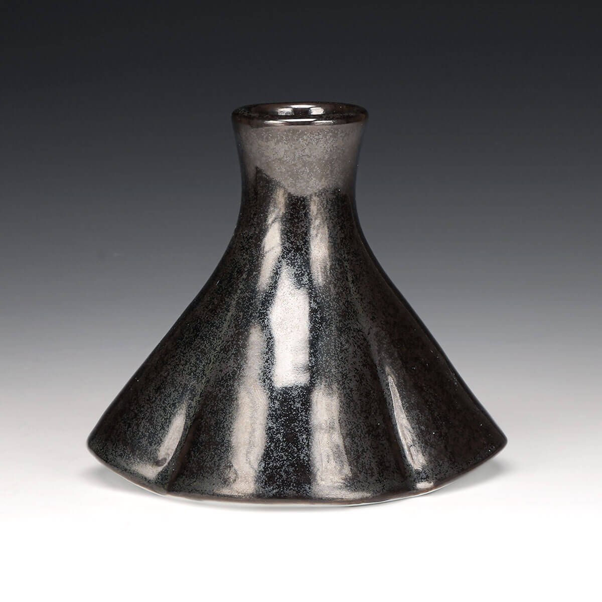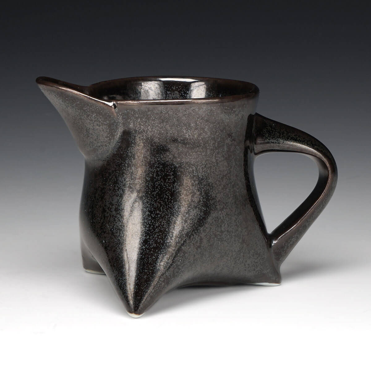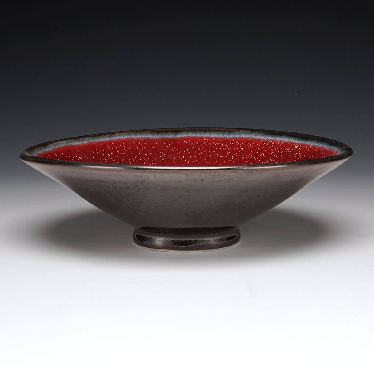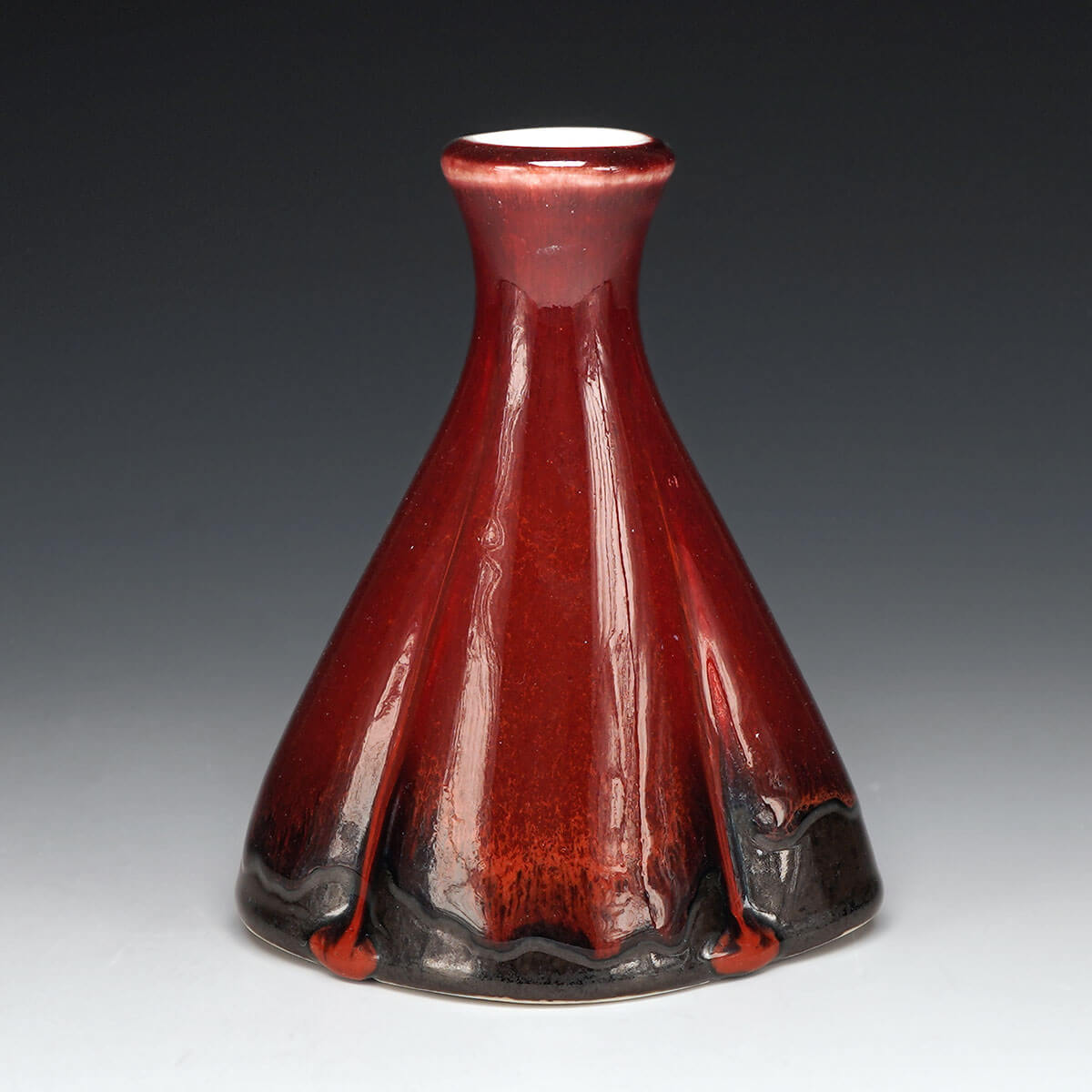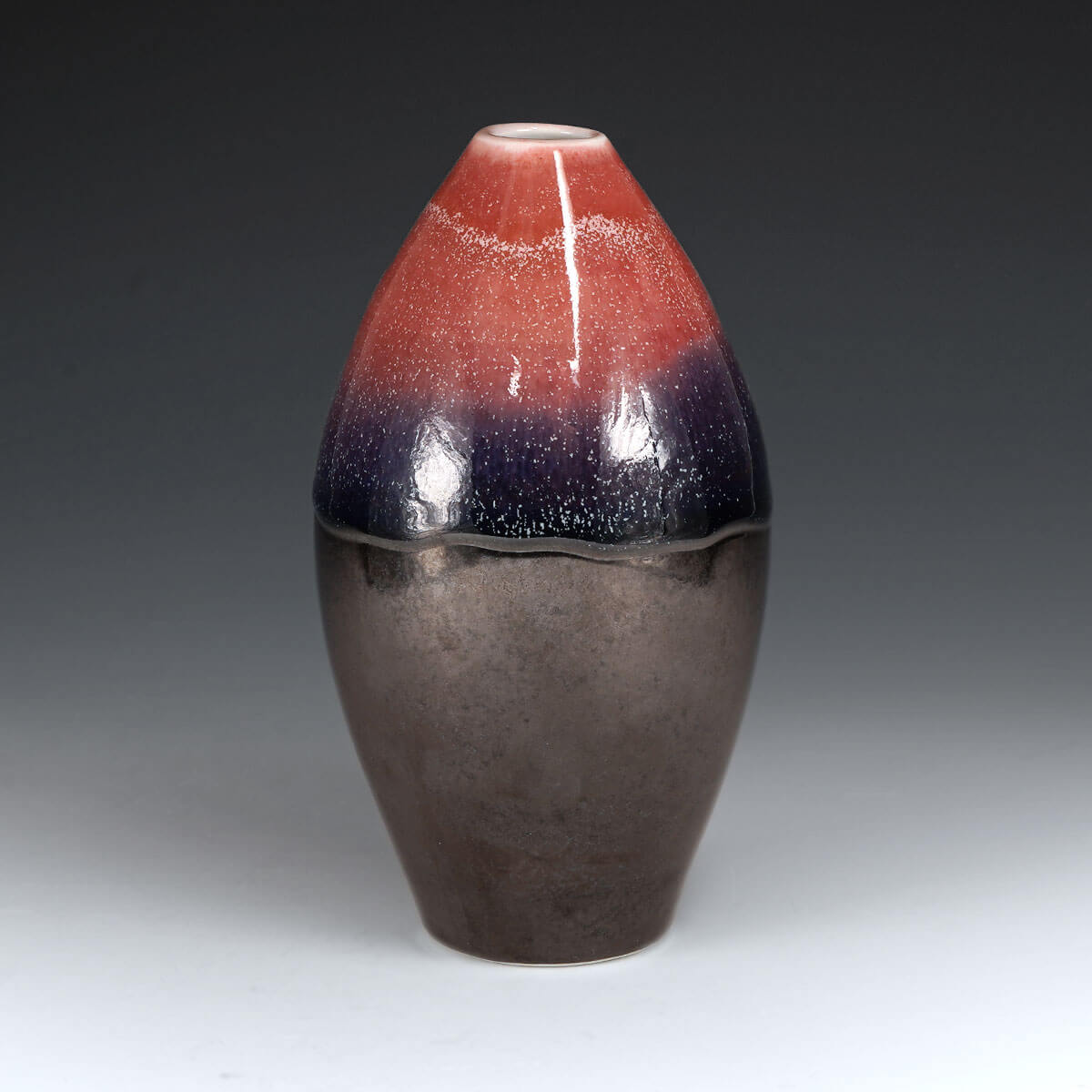 I also have a passion for glazes. They enhance the movement of my work with luminous flowing crystal surfaces and embellish the pots with rich glaze depth and color. Layering of glazes promotes the microcrystalline effects. I have formulated copper red variations with delicate white crystals for cups and vessels, brilliant celadon on white glazes (the Dancing Teapot) and other fascinating microcrystalline effects that are not represented in the limited images.