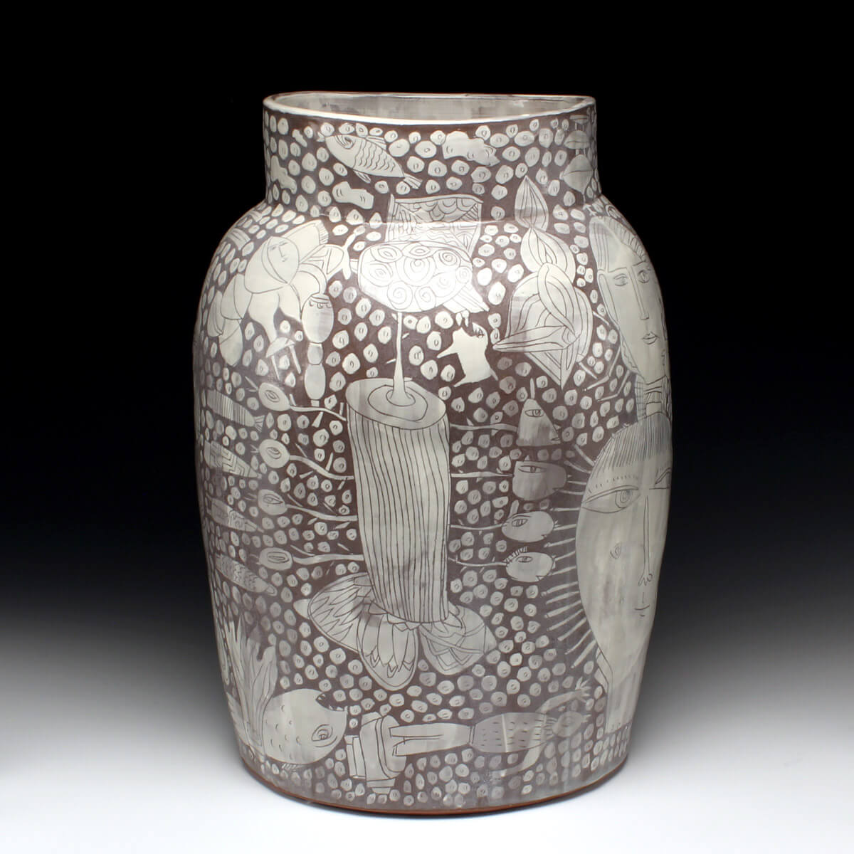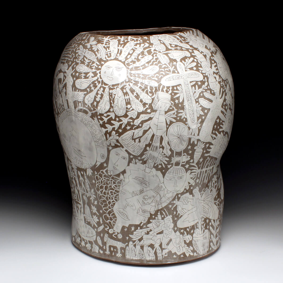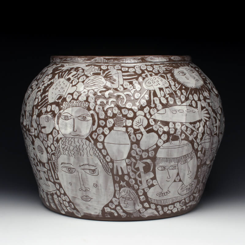 Guest Curated by our spring workshop presenters Michael Hunt and Naomi Dalglish of Bandana Pottery, Fluid Expression features artists who are creatively using slip on their ceramic work and exploring techniques such as using contrasting clays and slips, wiping, brushing, dipping, slip trailing, carving, wax resist, stencils, combing, pouring, stamping, inlay, and sgrafitto. These techniques all lend a rich depth of layers to the pots.