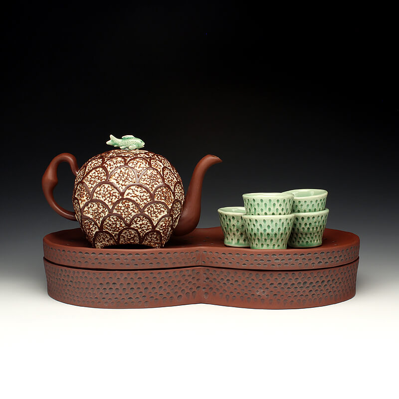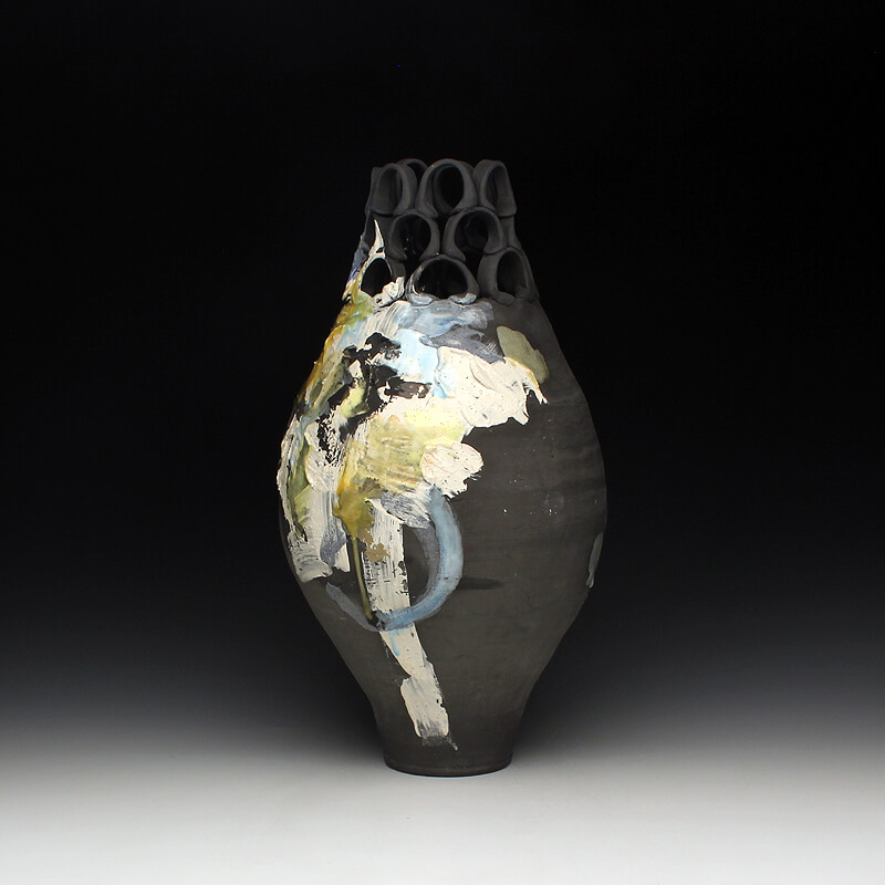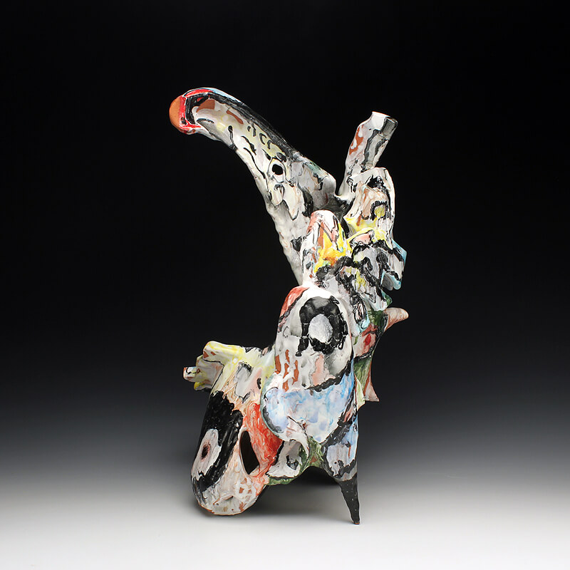 As the juror, I made a decision to accept works that more directly identified with this continuum and broader context for making. In my opinion, the six elements listed above are the fundamental components that link together the ceramic works that have been able to re-adapt, evolve, and sustain post-industrial clay creation as we know it.  Combined, these elements are the framework under which I juried the Clay National V.  From the pool of 187 applicants, the selected 50 works by 41 artists are those that I feel best fit the above criteria. -Mike Helke