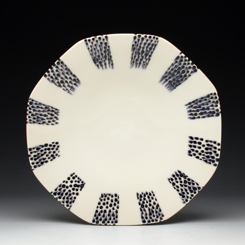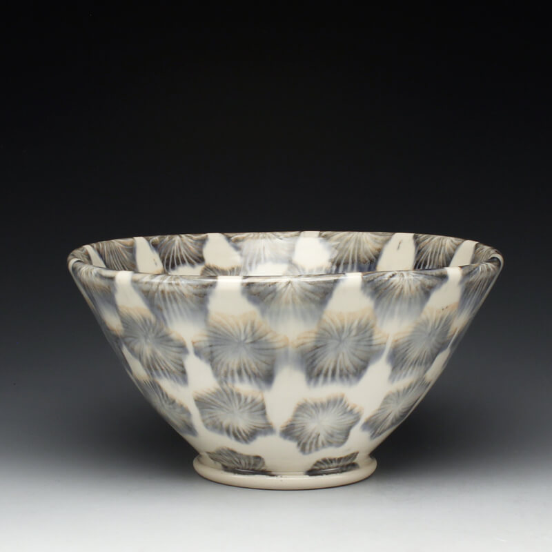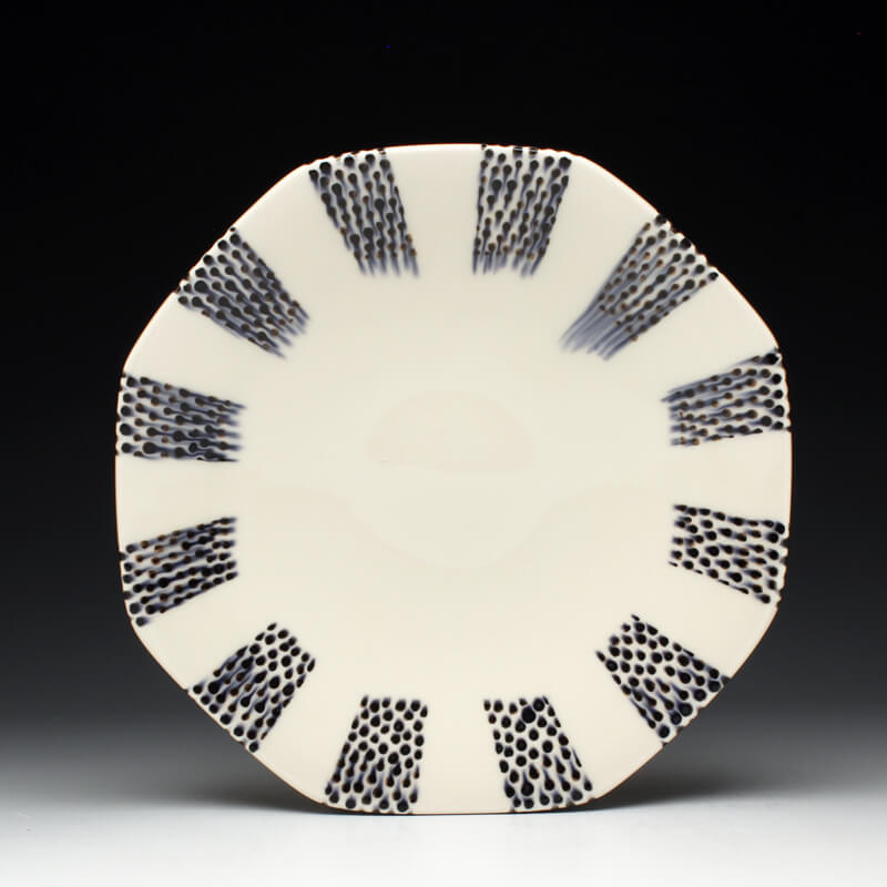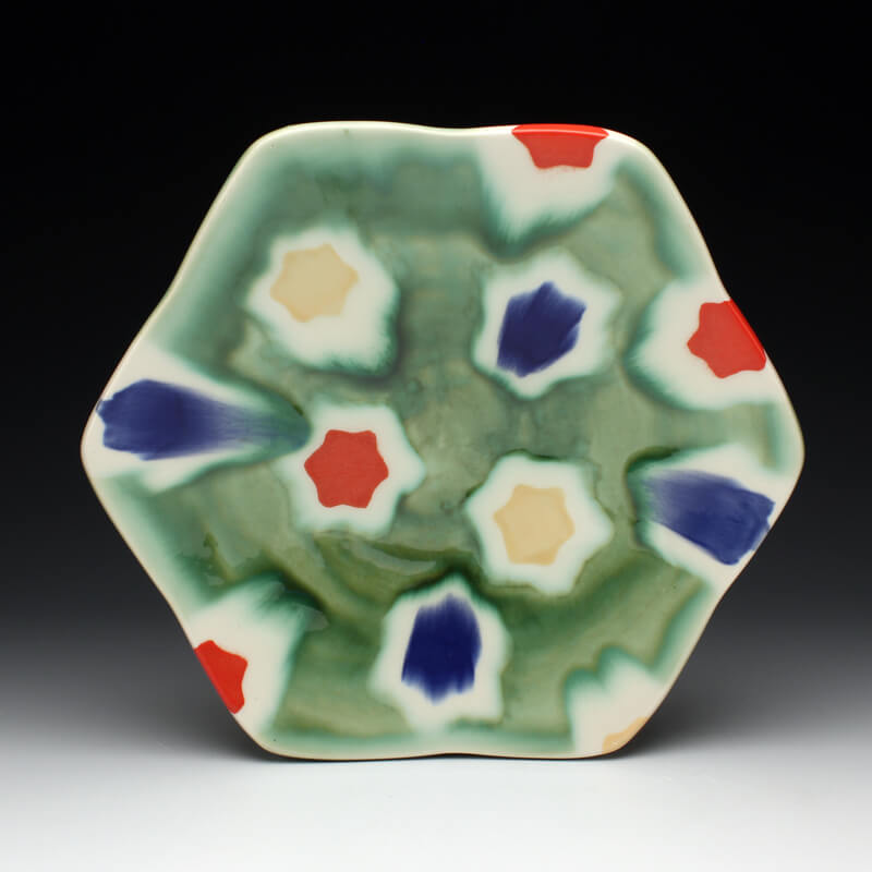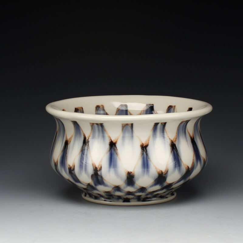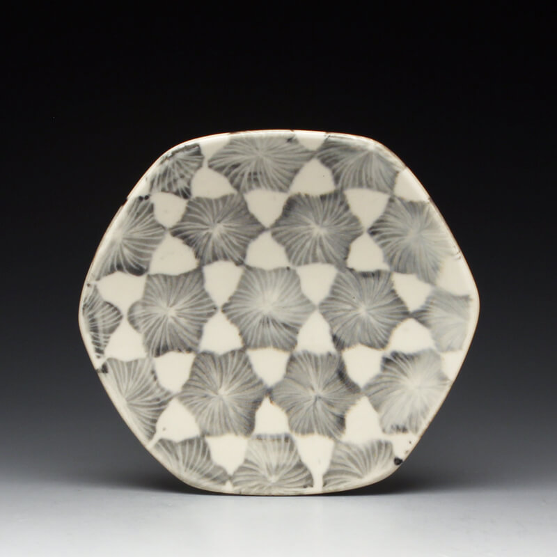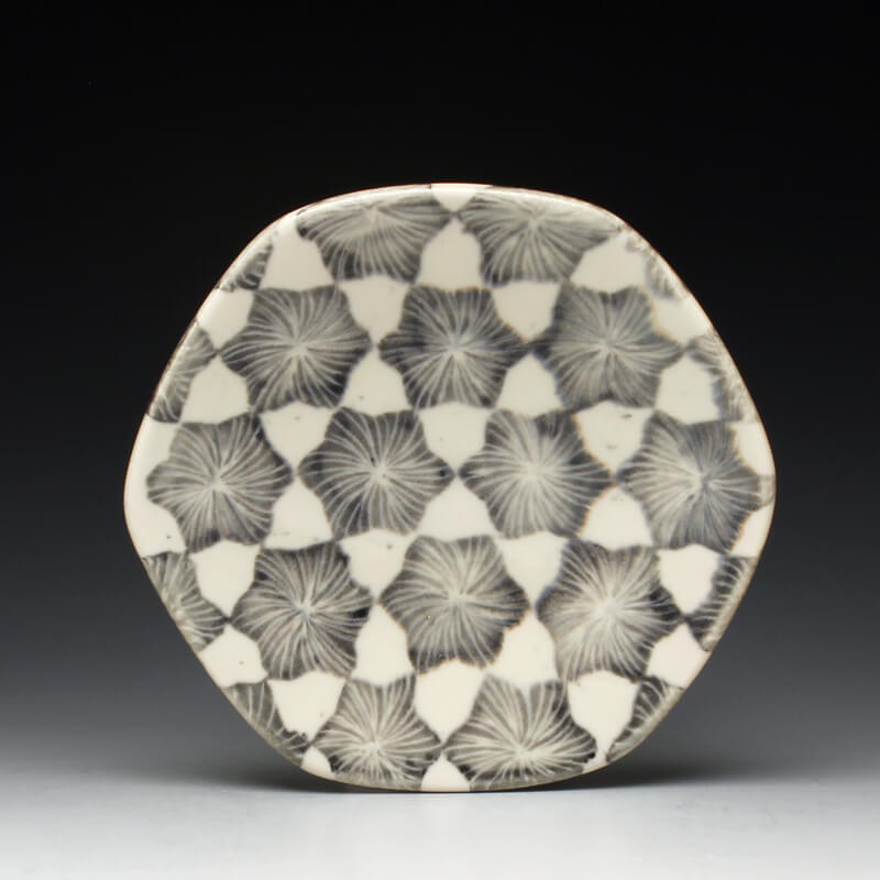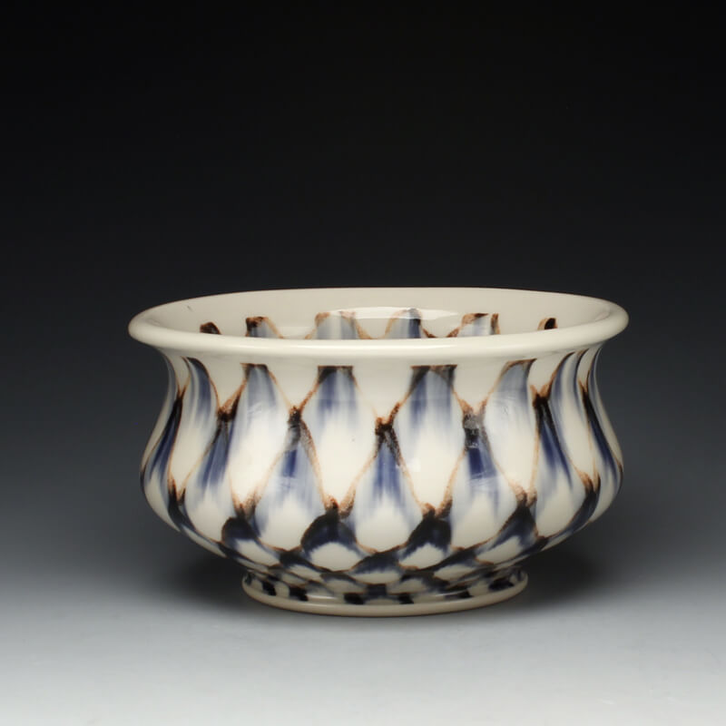 Many of the motifs I use are adapted or interpreted from textiles, paintings, and natural geometry. My formal vocabulary is culled from historic and contemporary ceramic art, design, and my own few novel additions. It is within these chosen limitations that I search for a sense of beauty, self-expression, and common experience.