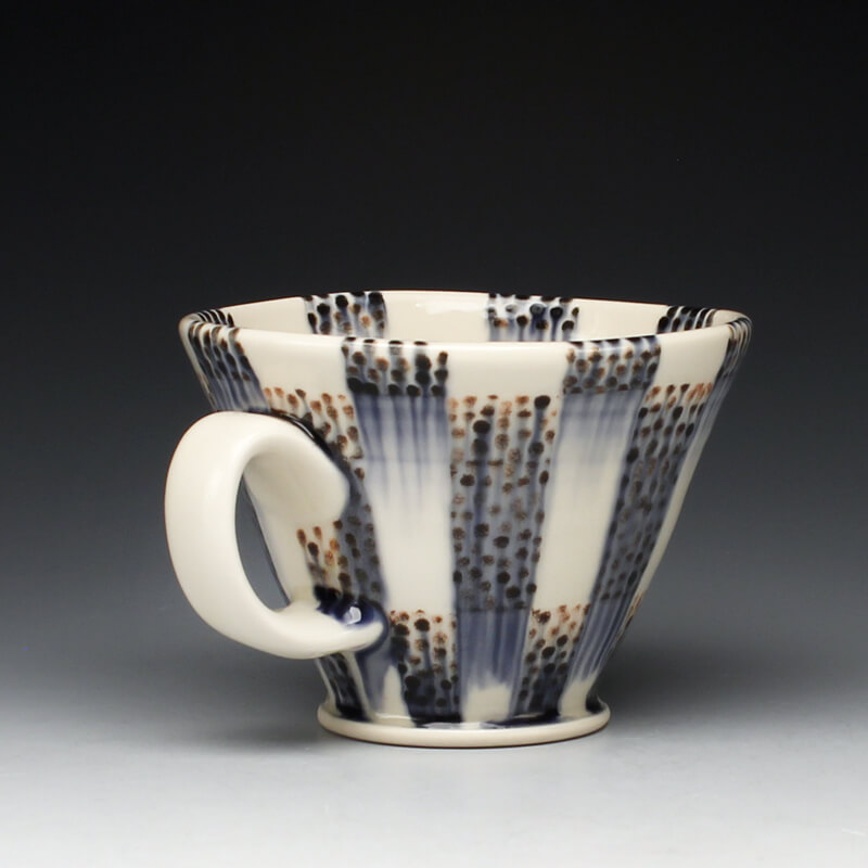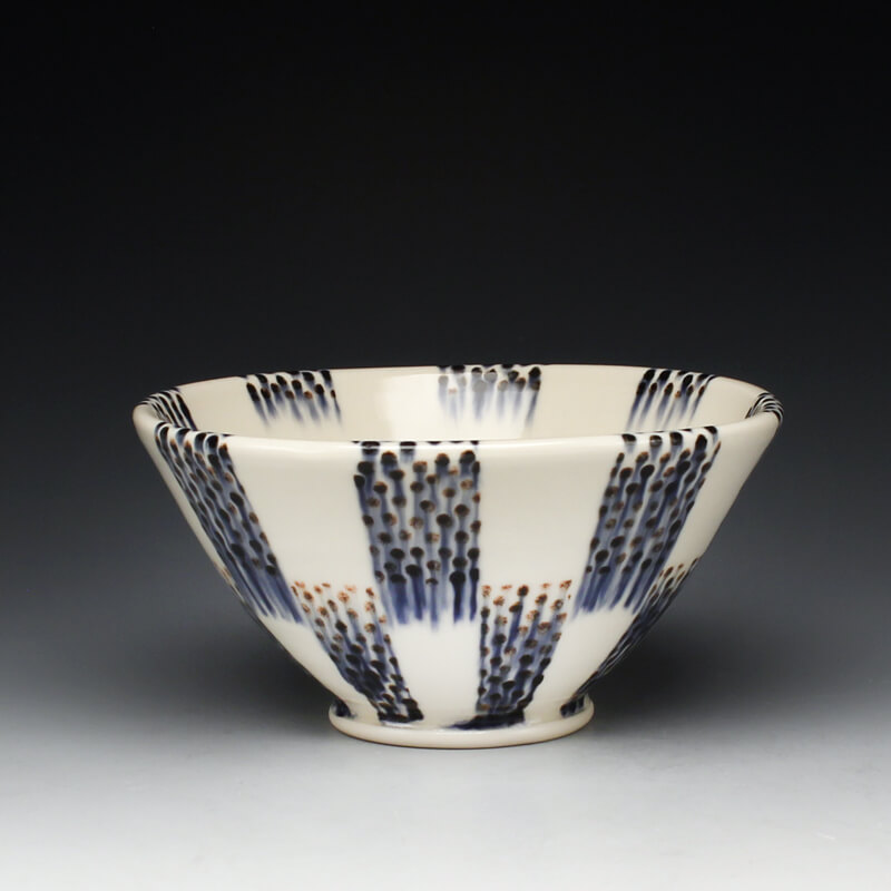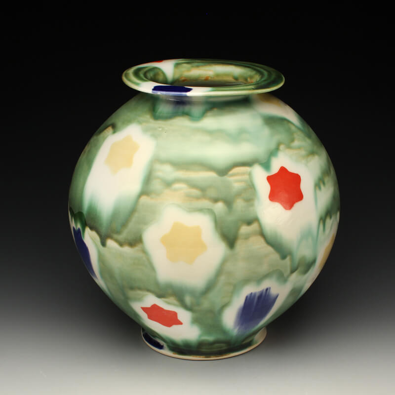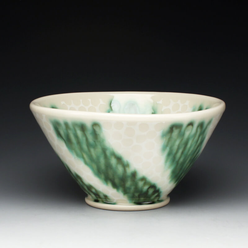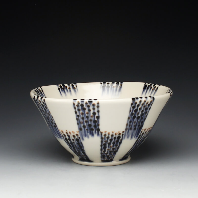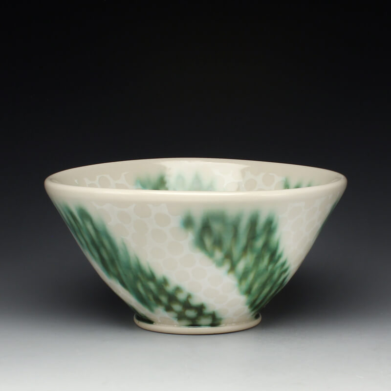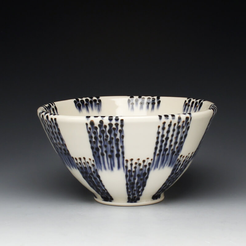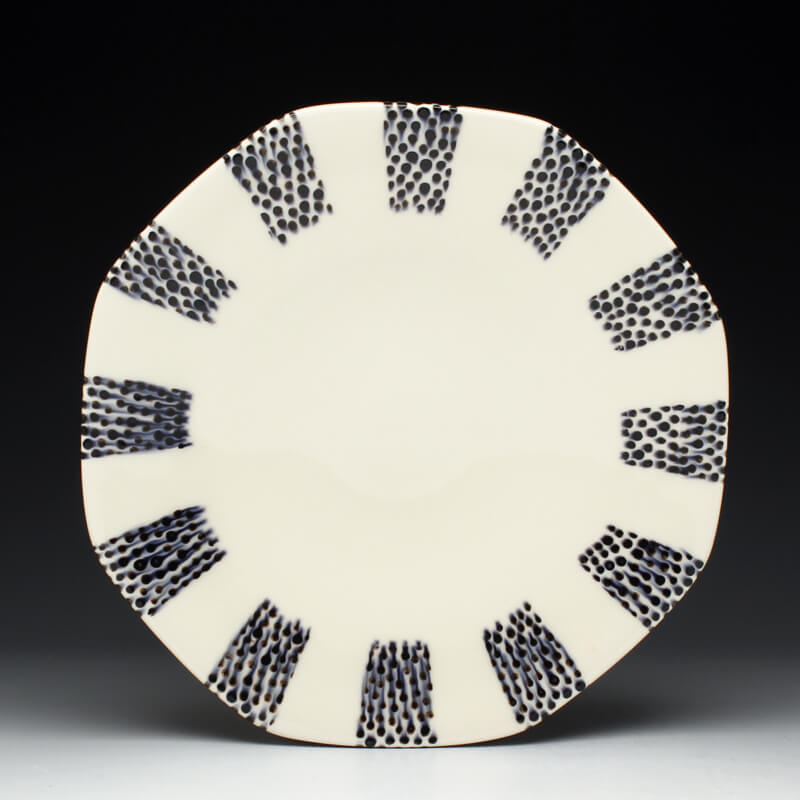 Many of the motifs I use are adapted or interpreted from textiles, paintings, and natural geometry. My formal vocabulary is culled from historic and contemporary ceramic art, design, and my own few novel additions. It is within these chosen limitations that I search for a sense of beauty, self-expression, and common experience.