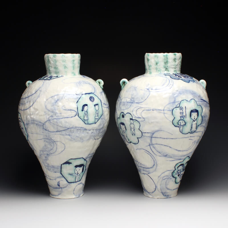 The work of Steven Y. Lee and Beth Lo are natural complements to each other. Both draw from life experiences, childhood memories, and their Asian heritage growing up in the United States with immigrant parents. This exhibition includes their individual work, as well as a collection of collaborative pieces that highlight Steve’s sensitivity to form and pattern combined with Beth’s emotive imagery and narrative.