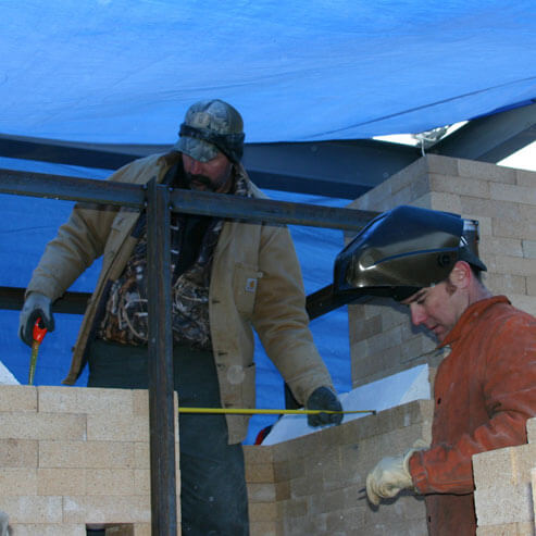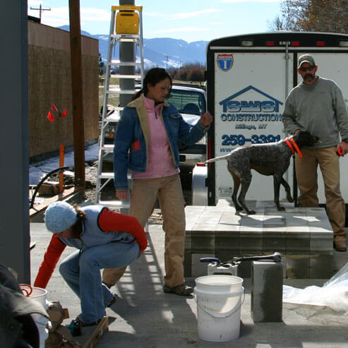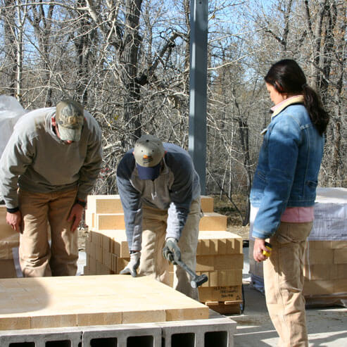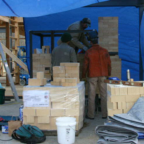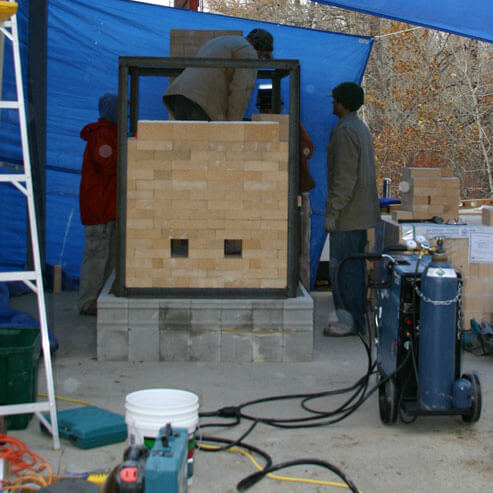 Matt Long, Professor of Ceramics at the University of Mississippi (Ole Miss) visited Red Lodge in the Fall of 2006 to build the Center’s first kiln on the outdoor kiln yard patio. The cross draft style soda kiln is 16 cubic feet and is fired by many of our resident artists.